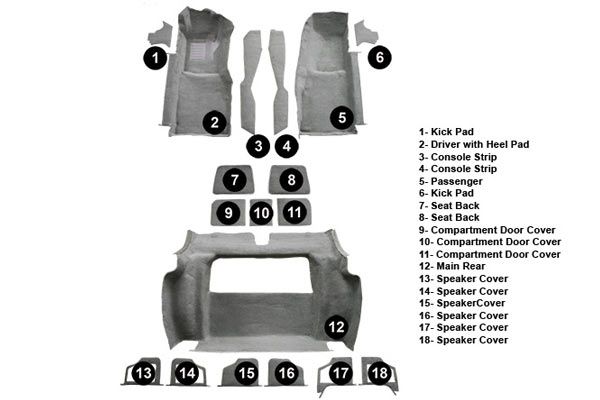 Originally deemed “Cut-Pile”, this premium 16oz soft fuzzy design carpet was originally installed on all 1978-1982 Corvettes. All full carpet sets include molded front floor pans, kick panel, console sides, seat back, rear storage compartment door, rear speaker covers and a molded rear cargo/wheel wells – jute padding is included where and when original. Floor pan carpets feature correct dimmer switch pad and color molded heel pad. All carpet sets are available in factory matching colors. Specify color when ordering.