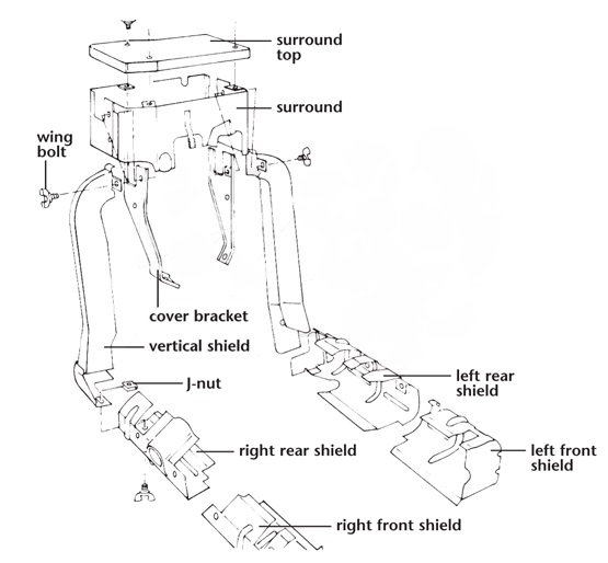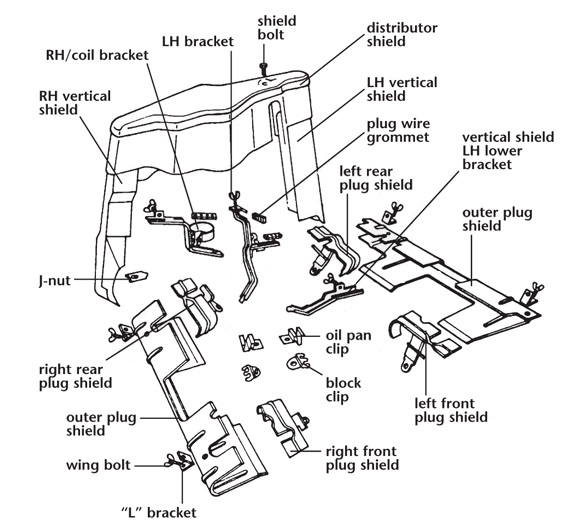 Original style 1956-1977 Corvette vertical ignition shield lower j-nut – secures the vertical shield to the vertical shield lower mount bracket on the engine block.