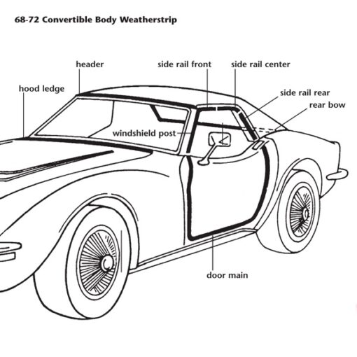New reproduction EPDM 1968-1975 Corvette soft top or convertible top rear bow weatherstrip. Mounts to the convertible top frame rear bow sealing to the soft top to the deck lid.