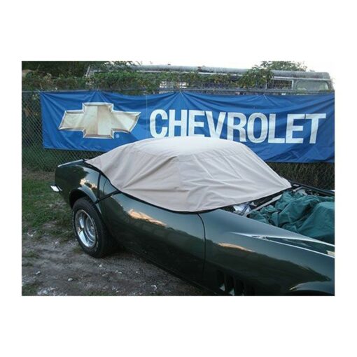 The easy installation allows for covered protection in just minutes with no modification to your Corvette. Attachment points include wiper arms, driver’s side mirror, door handles and convertible top receivers. Easily removes in seconds; when wet, the cover disperses water with a gently shake. Light Khaki color.