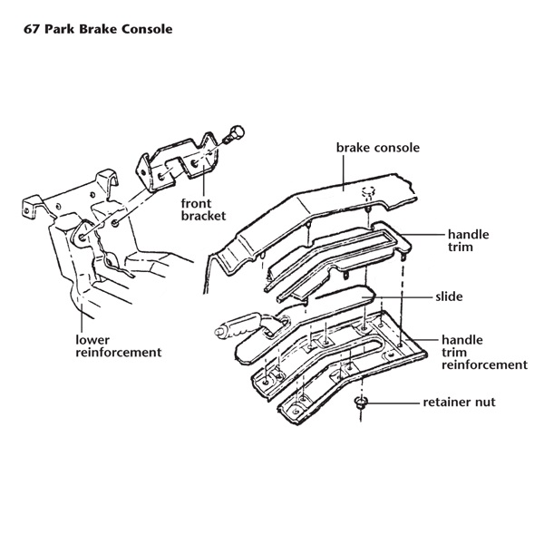 New 1967-1976 Corvette park brake handle slide/seal. Black plastic seal fits over the park brake handle and slides to fill area or void around the console. Slide seal is split at handle opening for installation.