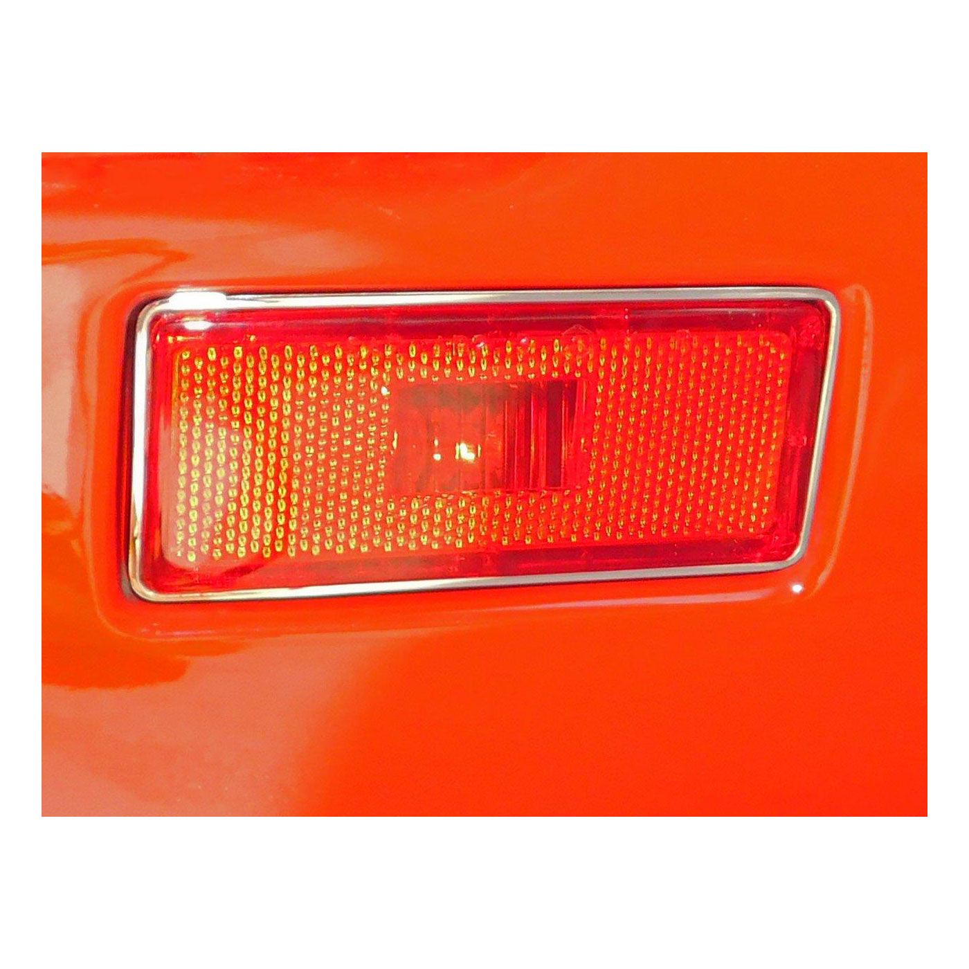 Nieuwe reproductie 1974 Late – 1982 Corvette zijmarkeringslicht achter. Wordt in het achterste zijpaneel gemonteerd. Inclusief reflecterende “rode” lens in originele stijl en plastic behuizing. Bevat SAE-informatie op de lens, maar bevat geen GM-onderdeelnummer in de behuizing aan de achterkant. Geef bij bestelling linker- of rechterzijde op.