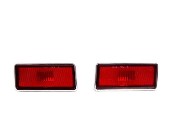 New reproduction 1974 Late – 1982 Corvette rear side marker light. Mounts into the rear quarter panel. Includes original style reflective “red” lens and plastic housing. Features SAE information on lens, but does not include GM part number in housing on rear. Specify LH or RH side when ordering.