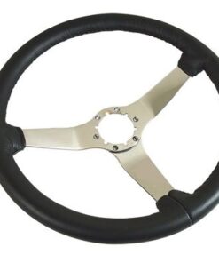 Nieuw reproductie gepolsterd Corvette stuur uit 1977-1979 met gesatineerde spaken als origineel. Correcte leerkleuren, dikke originele vulling en correcte stiksels. Geef kleur op bij bestelling. Geen kern nodig!