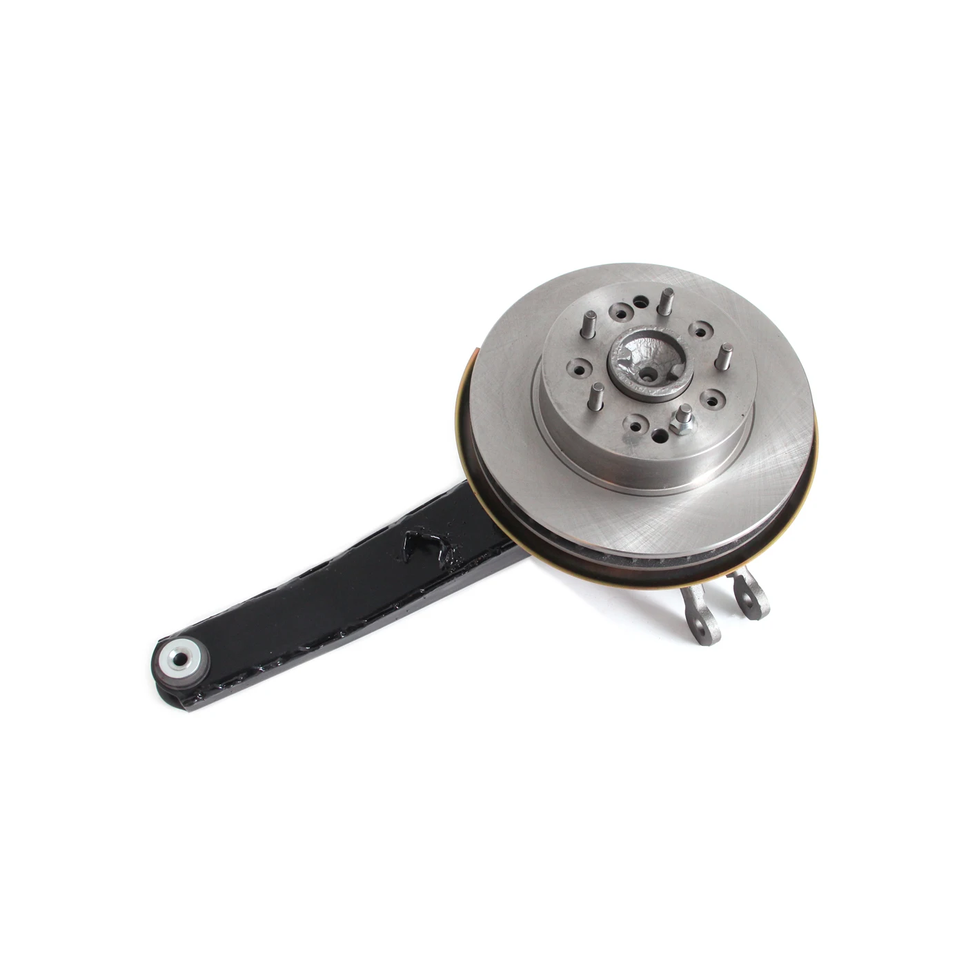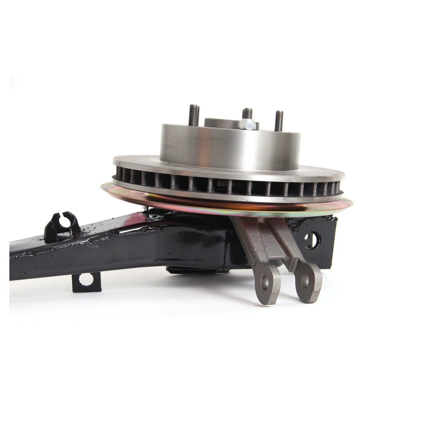 Our own skilled technicians start with a new powder coated trailing arm with a front bushing installed. The wheel bearing assembly is set-up to GM specifications with all new spindle, Timken wheel bearings, inner & outer bearing seals, spindle shim and spacer. Assembly is completed with a new bearing dust shield, park brake back-plate (gold), park brake shoes and stainless park brake hardware. Park brake components are adjusted to the new disc brake rotor. Our new brake rotors guarantee run-out is kept to within correct tolerances.